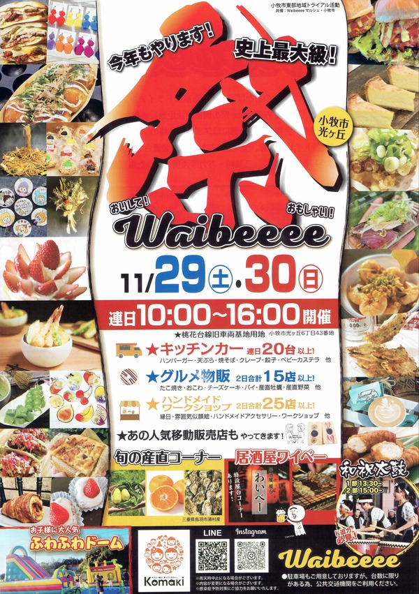 11/29(土)30(日)の2日間で『第3回 Waibeeee祭』が開催。桃花台線旧車両基地用地にて(小牧市光ケ丘)