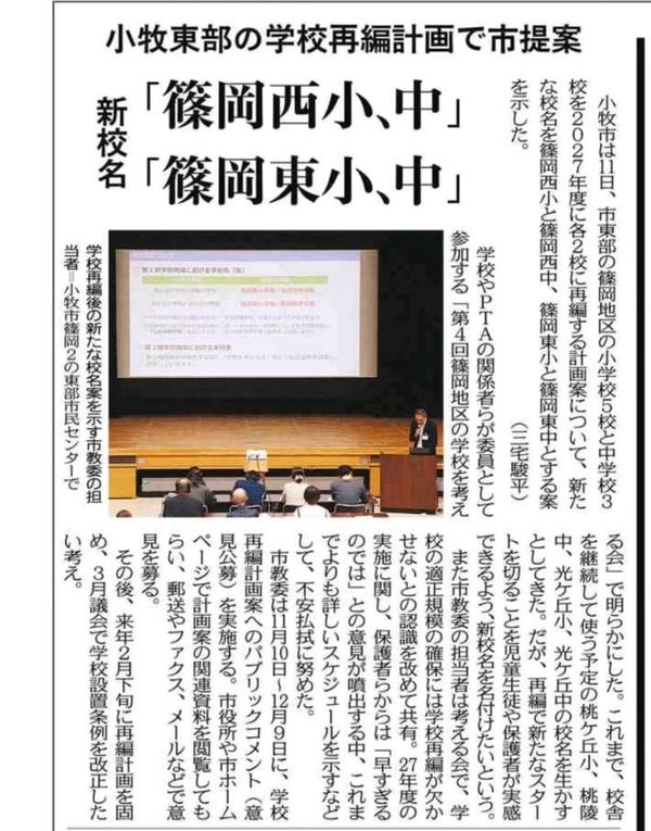 桃ヶ丘小/桃陵中→「篠岡西小、中」光ヶ丘小中→「篠岡東小、中」???【小牧市東部学校再編】