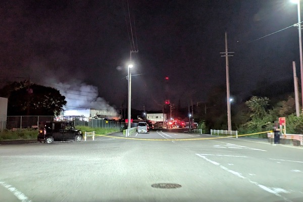 市民四季の森の隣にある産業廃棄物リサイクルセンターで火事。現在消火中(小牧市大草)