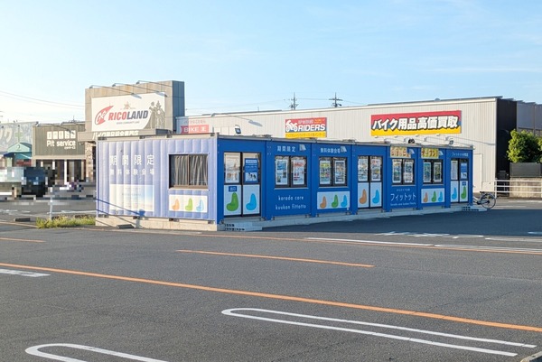 小牧市間々原新田に「フィットット」がオープンしています。 期間限定の店舗 こちら。BIGILIVE小牧店の駐車場内。背後に見えるのはバイク用品のライ···