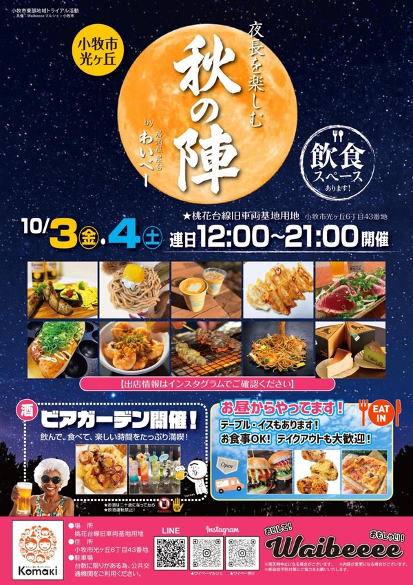 10/3(金)10/4(土)に『秋の陣 by居酒屋屋台わいべー』が開催。会場は桃花台···